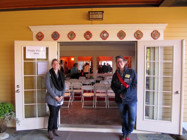 Trying to keep up with Greg, after registration, get in quickly to get our seats, front of Pema Osel Retreat