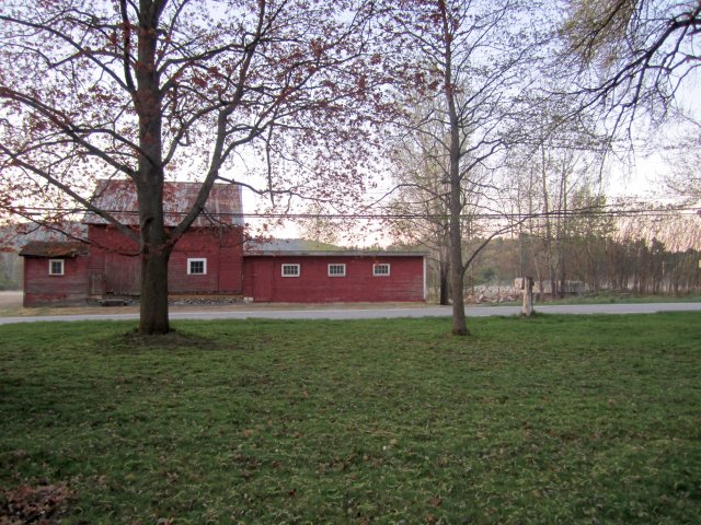 Sitting on the porch eating my dinner, enjoying the beauty around me. The barn across the street.
