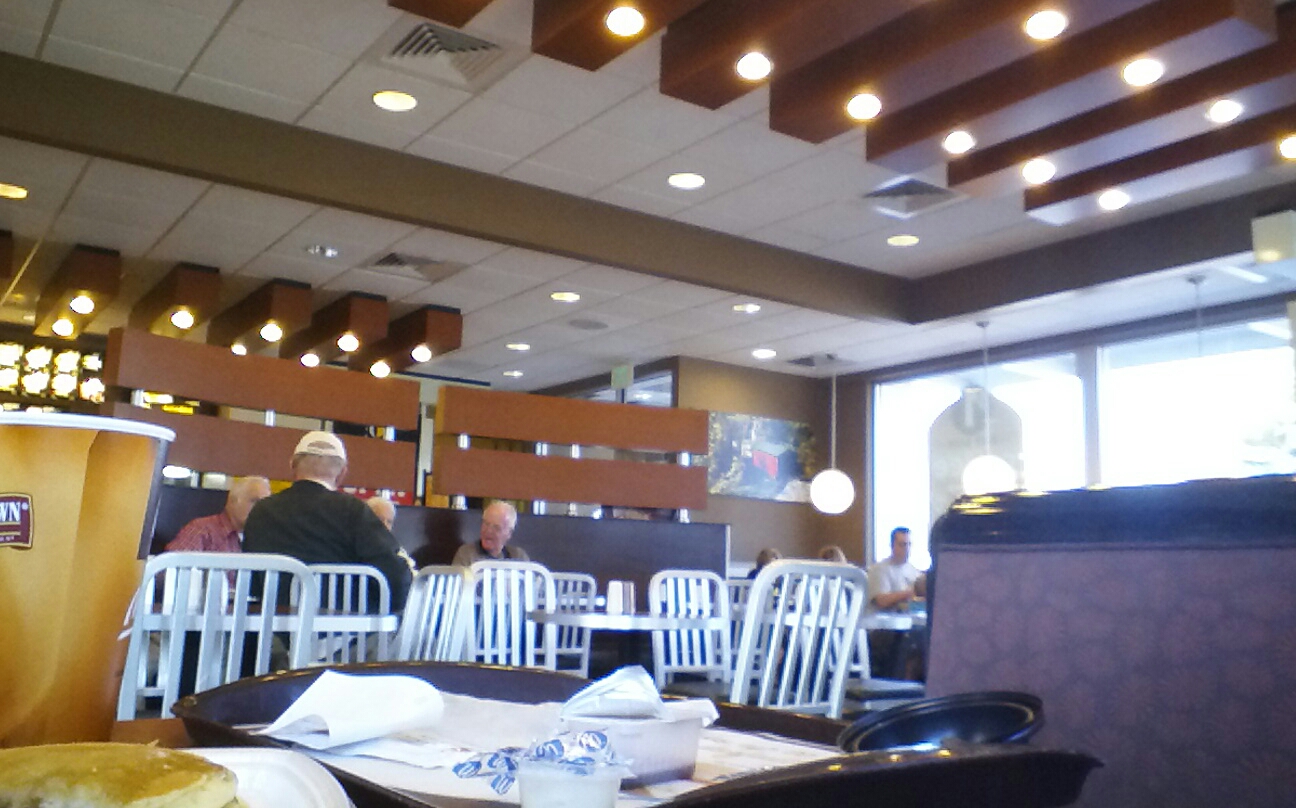 One last photo, before I went to the airport I stopped for coffee, I had time to kill. There were 4 older gentlemen sitting at another table, they were discussing the problems of Burlington. I ease dropped for over an hour, it was like I was in Mayberry. Another thing that surprised me is that I turned on a classical station while driving, when the music stopped, they were not speaking spanish, the were speaking french. Wow I wasn't in California.... I listened to the local news, watch out for the moose, and the amphibians on the roads, and that you need a permit to burn your trash, this month. I was in a very rural area. I won't bore you with my flight back home, but I did have to make a run for it in the Detroit airport to make my connection flight... I made it!