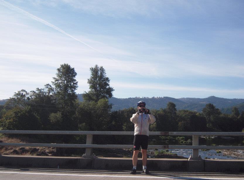 This is me on a bridge over the Umpqua River. As Mike was taking my picture, Willy was taking Mike's.