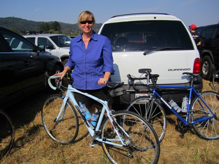 Jackie enjoying the farmlands and gentle rollers on the last day of Cycle Oregon.