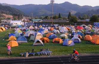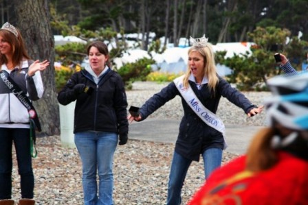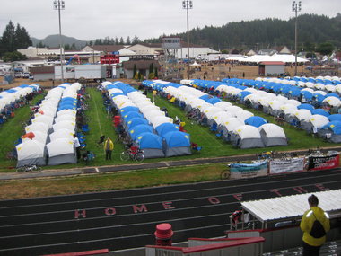 Greeted by Miss Oregon, her court, and towns people at Reedsport (these photos from the Oregonian paper) Reedsport campsite- porter tents