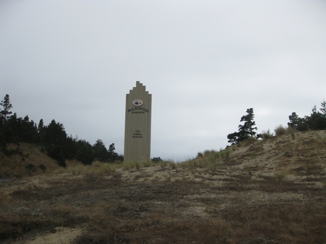 Riding through the golf course, golf carts have the right of way. Bandon Dunes
