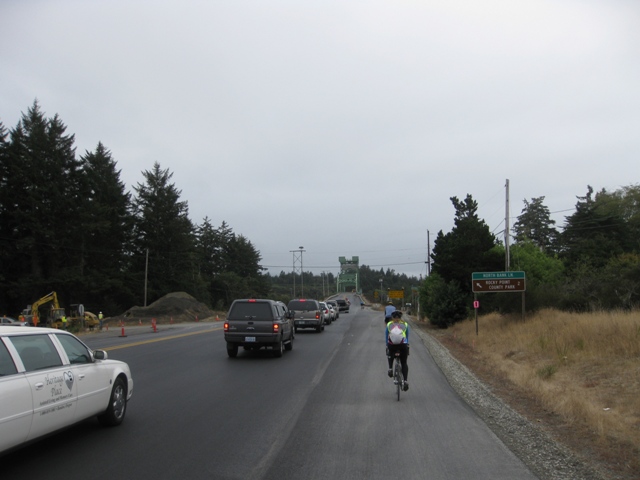 It was really nice and safe that the Oregon State Troppers stopped traffic on the 101 to help the cyclists cross the highway just before the McClullough Bridge.