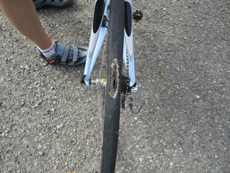 was so large, we doubted a boot would fix it, so we flagged down a Cycle Oregon support van. Mike, Scott and Rachelle waited with me until the SAG wagon