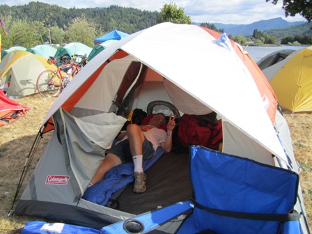 We arrived at camp fairly late. Everyone was so nice, they saved us a spot (Thanks guys!). Scott and Rachelle came in later, Scott had a broken spoke.
