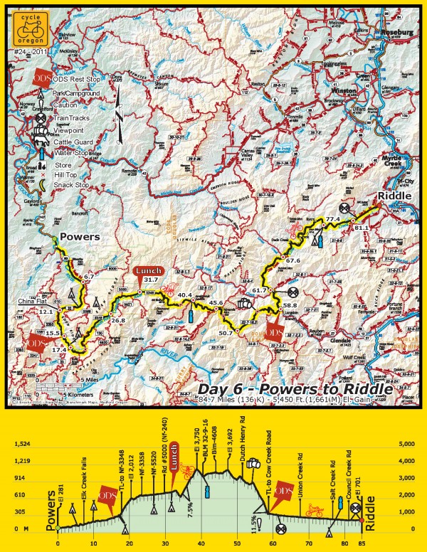 and always ready to shuttle riders to the top so they may do the descent or be taken to camp. Cycle Oregon marks the course using pink signs.