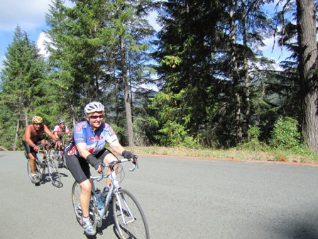It's not all down hill to the coast. At this point (70 miles+) any incline is a climb. Mike, Jan, and Karl
