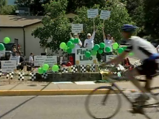 Help is always near by. Some cannot make it to the top of the climb so they hitch a ride with the SAG van (parked behind the ambulance) . SAG stands for "Support and Gear"