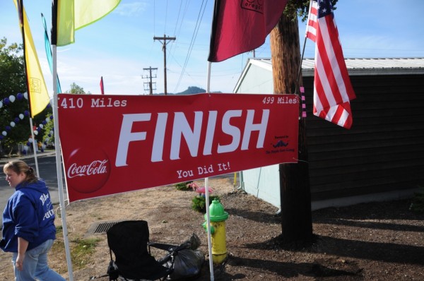 When we entered Cottage Grove people lined the street and cheered our arrival. As we crossed the finish line we each recieved a small carton of chocolate milk.