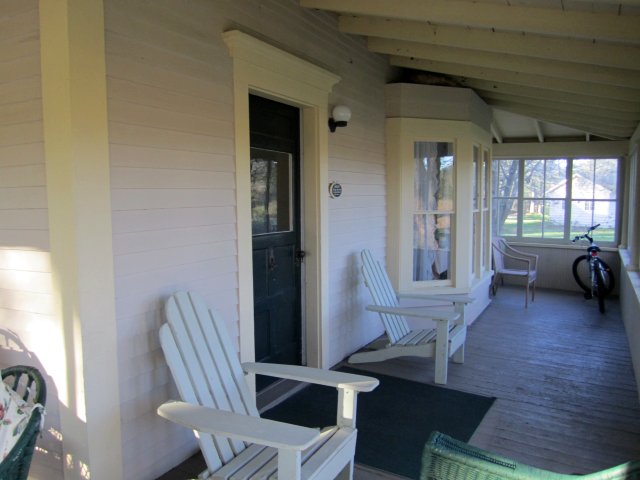 Front porch around the corner my view while eating dinner, a barn across the street.