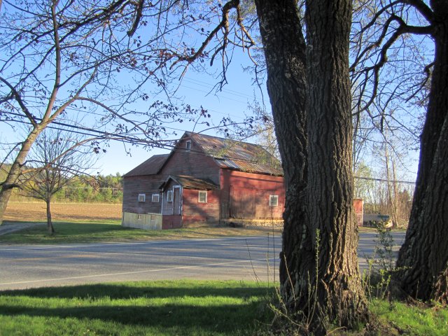 Sitting on the porch eating my dinner, enjoying the beauty around me. The barn across the street.