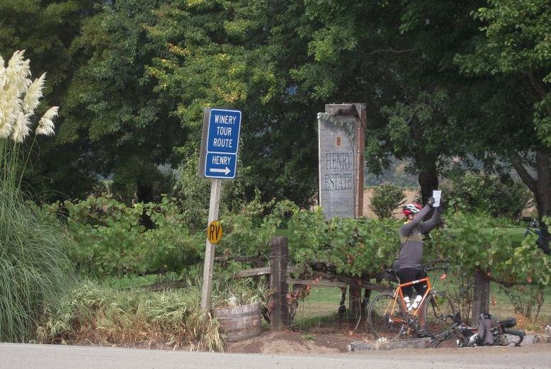 Rows and rows of grapes... Henry Estate Winery; water stop