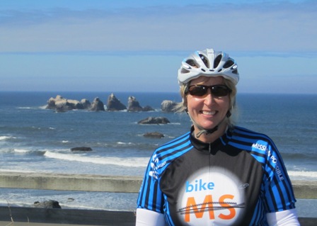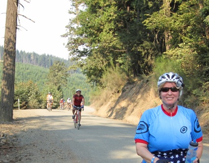 Jackie enjoying the farmlands and gentle rollers on the last day of Cycle Oregon.