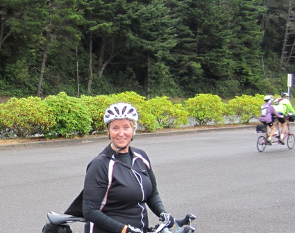 photo from Oregonian Cycle Oregon crossing 101 Rachelle, Jackie, and Mike