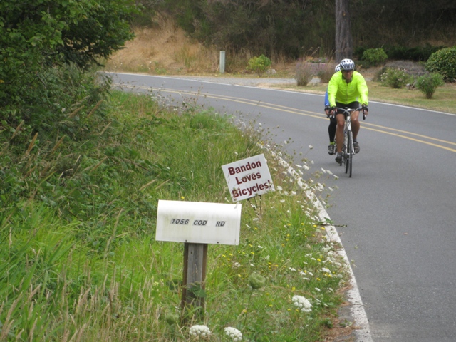 The last few miles had many encouraging signs. The town Bandon welcomed us with their art work.